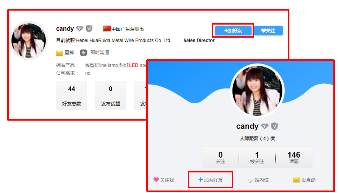 如下圖所示:在任意位置看到一個(gè)人都可以通過(guò)加好友按鈕