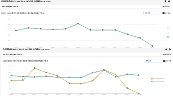 同樣在對華關(guān)稅大幅提升下, 該進口商的采購活躍度和采購量也大幅縮水。