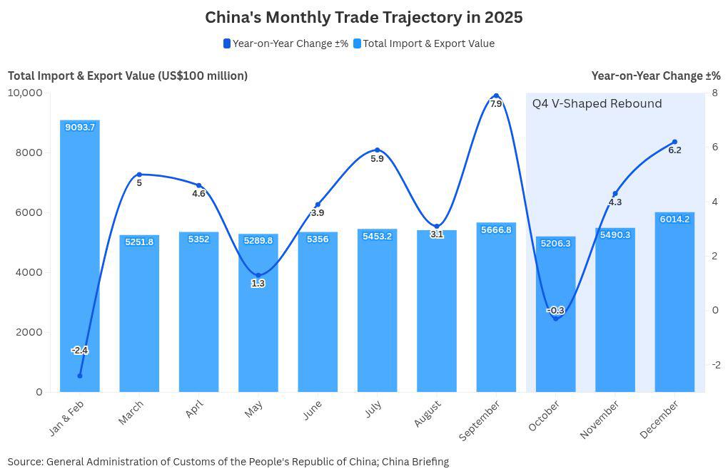 盡管外部環(huán)境復(fù)雜,2025年中國外貿(mào)已交出亮眼答卷:進出口總值達45萬億元,同比增長3.8%。其中,“一帶一路”沿線國家貿(mào)易占比高達51.9%,同比增長6.3%,首次成為中國外貿(mào)的“壓艙石”。2026年一季度(1-2月)數(shù)據(jù)更顯示韌性延續(xù):貨物貿(mào)易同比增長18.3%,出口增長19.2%。東盟繼續(xù)穩(wěn)居最大貿(mào)易伙伴,貿(mào)易額增長20.3%;歐盟增長19.9%;拉美、非洲分別增長19.7%和34.2%。對美出口下滑被新興市場強勁增量完全彌補。