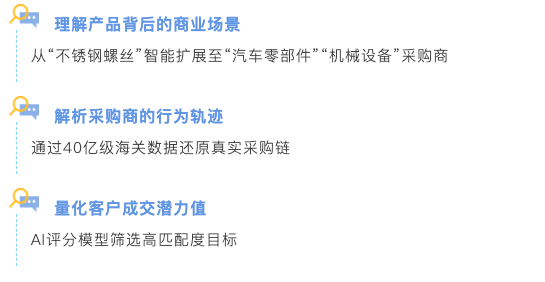 易之家GPM-AI智體連接了全球超40億條進(jìn)出口數(shù)據(jù)、數(shù)百萬級采購商畫像與企業(yè)標(biāo)簽體系,我們構(gòu)建的是【會思考外貿(mào)業(yè)務(wù)的AI智體】: