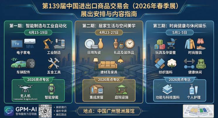 第139屆廣交會(huì)將于2026年4月15日在廣州正式開幕,分三期舉辦: