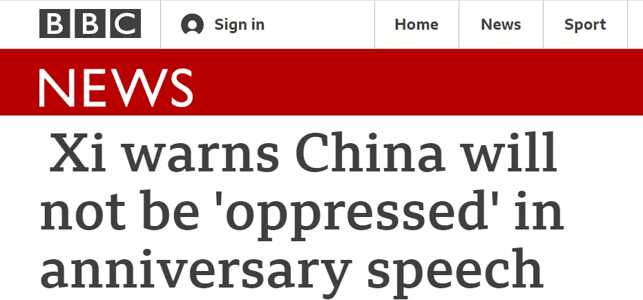 英國廣播公司:習近平在慶祝大會演講中告誡稱,中國不會被壓迫