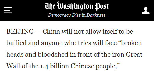 華盛頓郵報:中國不會再被人欺負,誰妄想這樣干,必將在14億多中國人民用血肉鑄成的鋼鐵長城面前碰得頭破血流。