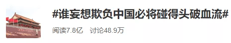 話題#誰妄想欺負中國必將碰得頭破血流#迅速登上熱搜,短短幾小時,閱讀就超過7.8億。(截至發(fā)稿,閱讀量還在快速增加。)