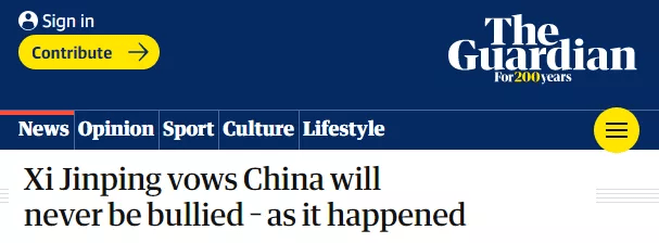 衛(wèi)報:習近平鄭重宣告稱,中國飽受欺凌的時代一去不復返了
