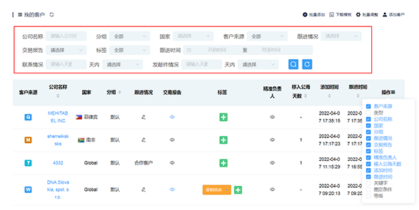 (1)在客戶列表中,可以根據(jù)表格字段進行高級篩選,快速高效找到目標客戶群體。