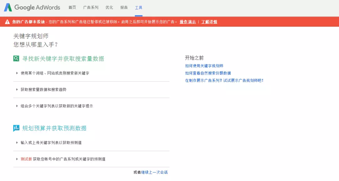 言歸正題,我們說一下Google Keyword Planner的使用方法。