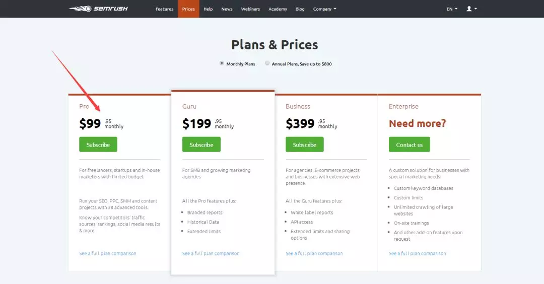 大家可以選擇付費(fèi)版,99刀/月的就可以,反正在做競爭對(duì)手分析、外鏈平臺(tái)搭建的時(shí)候,也要用到。