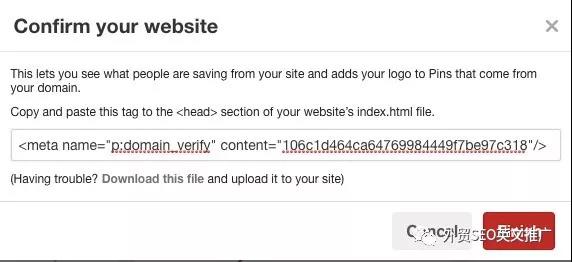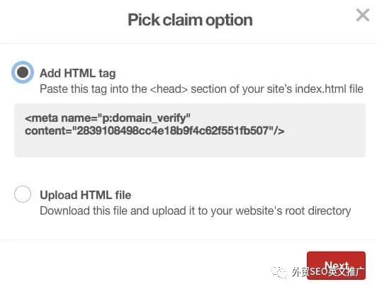 Claim website,即向Pinterest證明你是某網(wǎng)站的擁有者,驗證通過之后,你可以解鎖很多新功能,比如可以看到從你網(wǎng)站Pin出去的圖片帖子的成效分析等,也能讓Pinterest更能理解你的業(yè)務(wù),理解你的Pins。