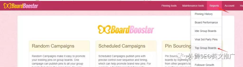 免費注冊后,如下圖所示,在Reports里選擇 Top Group Boards即可。