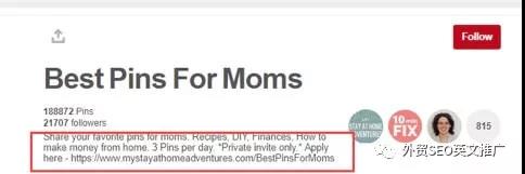 由于Pinterest排名算法里會考慮到個人資料里的鏈接和關(guān)鍵詞,所以完善資料是萬里長征最重要的一步。