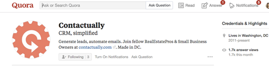 營銷人員擔(dān)心將自己的個(gè)人賬號(hào)與企業(yè)賬號(hào)混合在一起,因此Quora鼓勵(lì)企業(yè)擁有自己的賬號(hào)。雖然個(gè)人賬號(hào)可以提供個(gè)人可行建議,但企業(yè)帳戶可以解決技術(shù)性、行業(yè)性以及常見的商業(yè)性問題。這有助于企業(yè)真正形成自己的特色,并與現(xiàn)在、過去、甚至是未來潛在的客戶進(jìn)行互動(dòng)。