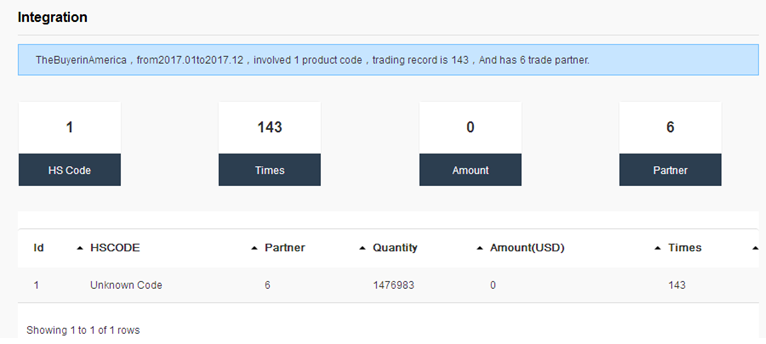 VII.Description, the above examples in the United States, but different countriesto open the level of data, so the data content of different countries, theEuropean Union, the Middle East, Africa and other countries, can only be inaccordance with the product of the first six-bit HS code search, the datacontent is relatively simple, only have the name of the buyer and contact. Blowis a look at the process of using this type of country data: