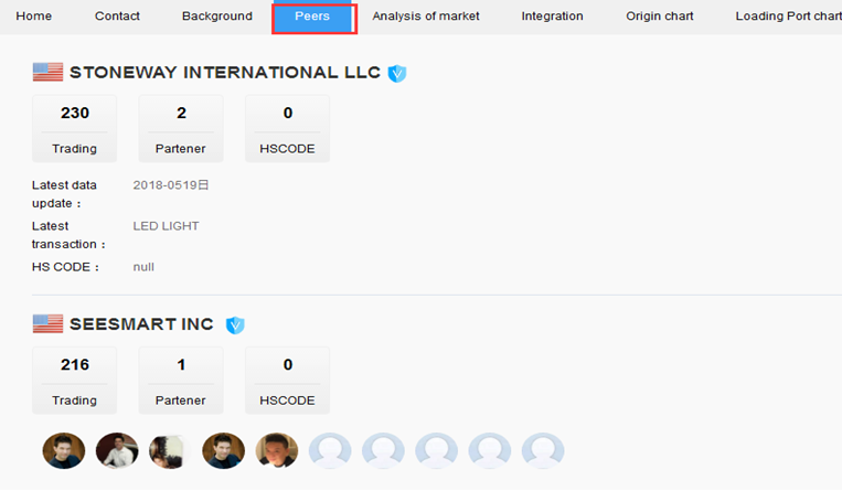 vii. Peer companies:RAB LIGHTING is the buyer of the peer enterprise, that is, your potentialcustomers. In addition to the introduction of the number of trading partnerscan be analyzed, focus on monitoring the trading relationship betweenenterprises, the system directly concerned about the strength of the peercompanies show up, easy to analyze.