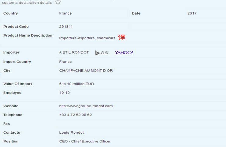 iii. As shownunder blow picture, the most detailed information on the United States data,which we have included Bing or Yahoo in the data search engines, so thatcustomers can use the search engine directly online find buyers moreinformation. Also has the translation software, clicks the red"translates" the word, the direct translation, lets the customer useit easily.